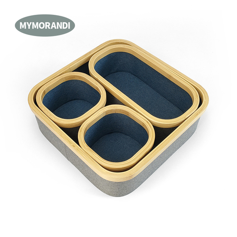 Cesta de almacenamiento de tela para armario, organizador multiusos con borde de bambú, 4 unidades